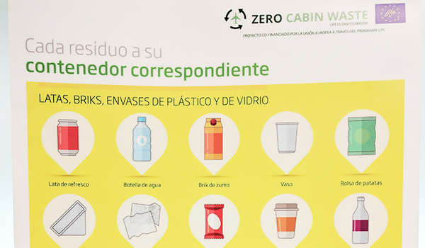 Con tal de facilitar las formaciones a la tripulación de cabina, se han editado cuatro carteles que muestran las tres categorías de residuos que se separaran a bordo: